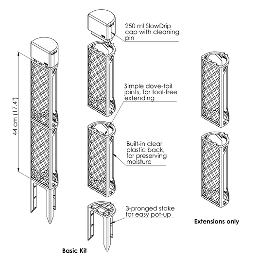 Demi-D-Shaped Moss Pole Kit with SlowDrip Cap (Diamond Pattern)