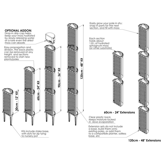 XL Moss Pole - Extensions - 25 cm long, 6 cm Diameter